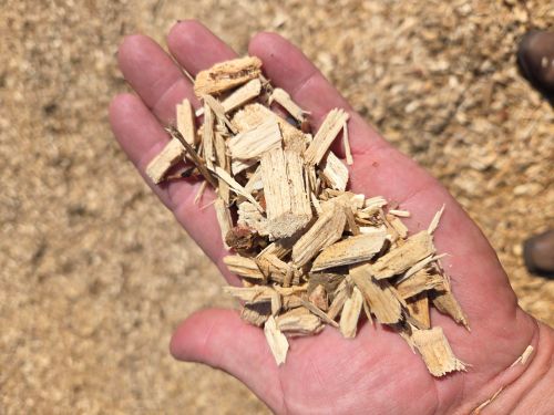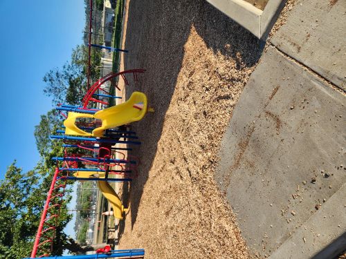 Playground wood chips are a softer wood fiber that does not splinter and shipped in from northern Arizona pine trees. They are screened to size (.5” - 1.5” in length, and .25” - .5” in width) to meet ADA, CPSC and ASTM standards for accessibility, shock absorbency and slip resistance (for wheelchair accessibility). They move around for a softer fall, easily kicked outside of borders and can blow around especially in high wind areas like Alpine, Ramona and local mountains.
